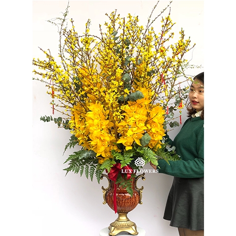 Bình hoa Mai Mỹ Hà Lan mix Địa Lan vàng